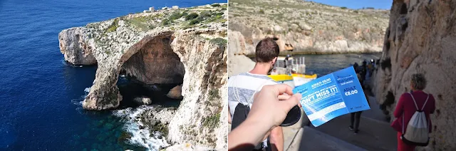 Mezi "tomusítevidět" patří určitě Blue Grotto. Nejprve ho okoukneme pěkně ze shora, poté sjedeme dolů, kupujeme lístky...